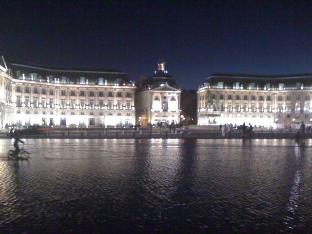 After we swung by and picked up Leslie we headed for the old quarter and wandered. We found ourselves on the busy shopping street (St Catherines) with thousands of people and high end shops. A quick glance at the map and a quick left took us away from the hustle and bustle. After a while we stopped for a lemonade and some maki. L’s bottle had a small glass ball in it for fizzing the soda. We found another church which helped settle our jittery ‘city nerves’ and resumed our meandering. Around 6 we found a restarant we liked and resolved to walk a bit before it opened. Around the corner we ran into Place de la Bourse with is huge line of 18 century buildings and mirror pond. Thus particular reflecting pool only has about 2 cm of water in it which drains to a couple of milimeters. Pretty cool (with all the waders, that was a double entendre.