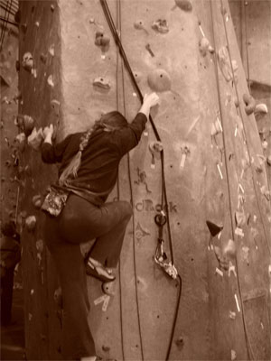This is L climbing the tower at Virg. I was screwing around with the sepia option onthe camera. Even with digital cameras, monotone images seem to even out the light just perfectly in bad lighting situations and make for a pictures that shows what you want it to show and subdues the rest…