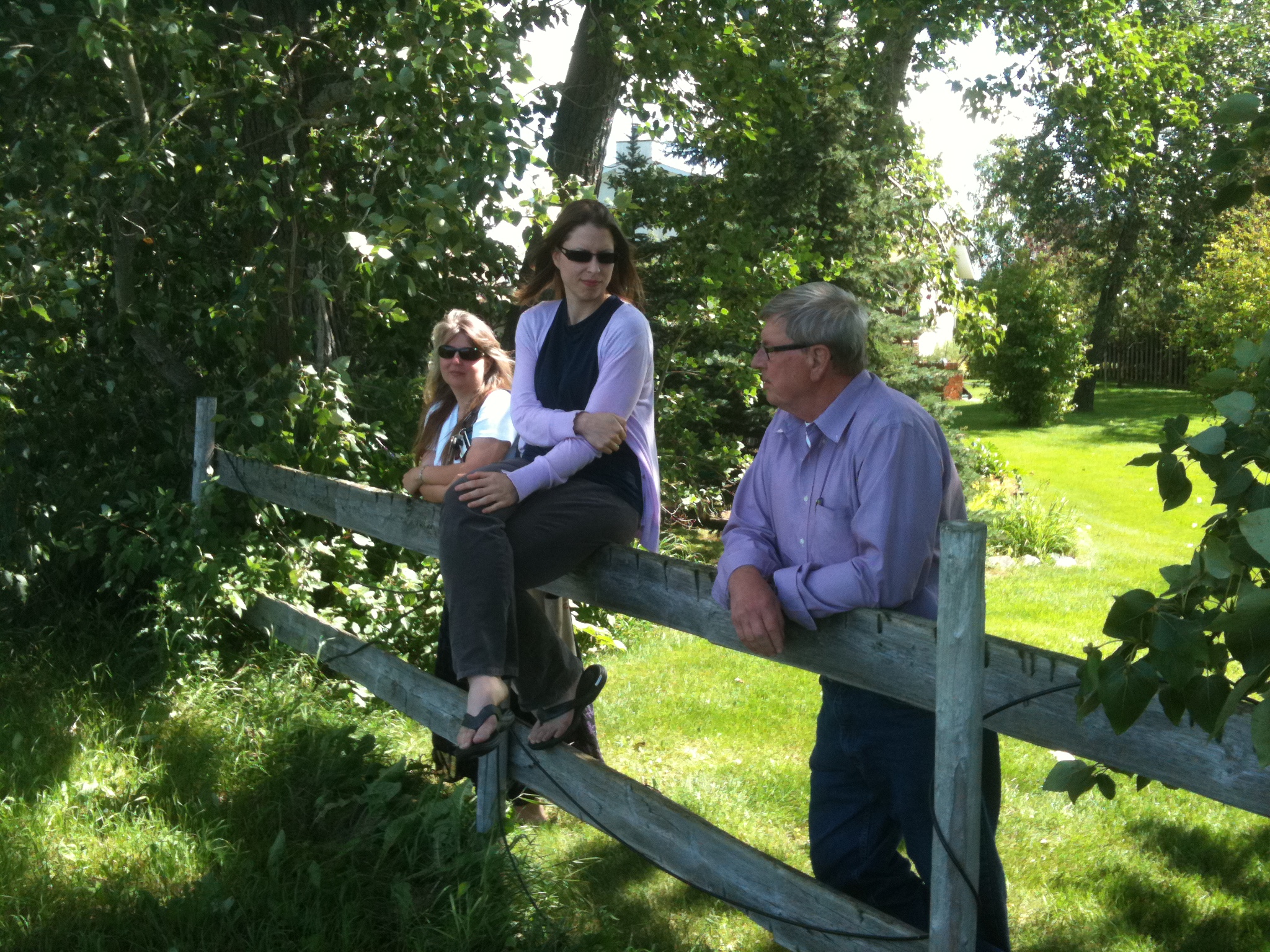 We finally made it out to the farm in Redwater. Which really isn’t a farm; except for the part that is. The house and and half of the back yard are in a suburban-looking townsite, but just beyond the trees and the gazebo you find the traditional old wooden granaries and automobile-stuffed shop which border on acres of pasture and canola. Pretty place.