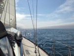 Slowly but surely the winds built and eventually we were sailing on a broad reach, gybing back and forth across the Strait.