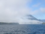 The fog broke a bit and visibility was 3 or 4 nm but it was pretty monotonous. We bisected a family of sea lions at one point as the swam across our bow and I spotted one dolphin. At one point the Coast Guard Cutter Gordon Reid Came up behind us about 3 miles off, but at 12 knots they passed us and we could barely make out their outline in the distance. Later when we turned into Port San Juan there they were, anchored in the mouth of the small bay, lights ablaze.