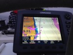 On the first pass we mistook the lights of the town for the marina and I narrowly missed (we had 2 feet under the keel) running us aground. The marina turned out to be the two dim lights off the starboard so I swung around and frantically divided my attention between the depth sounder (which never rose above 3 feet) and trying to make out a dock. Terry was on the bow with a flashlight but it was almost more distracting than helpful.